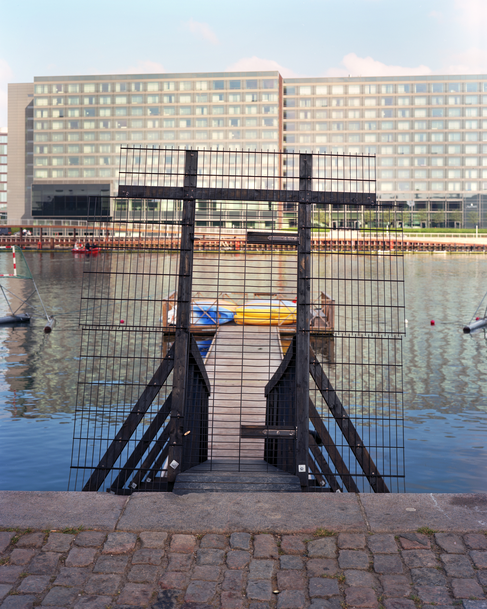 In seiner ersten institutionellen Einzelausstellung in der COALMINE richtet Giacomo Bianchetti sein Augenmerk beispielhaft auf die Bilderberg-Konferenz, ein geheimnisumwittertes Treffen von 130 einflussreichen Führungspersönlichkeiten aus Politik, Medien und Wirtschaft. Das hermetisch von der Öffentlichkeit abgeschottete Treffen findet jedes Jahr an einem anderen Ort statt. Wie schon 2013 in der Nähe von London, so näherte sich der Fotograf auch dieses Jahr in Kopenhagen ostentativ mit seiner Fachkamera dem Tagungsgelände. Dieses verwandelt sich während der Konferenz in eine abgeriegelte Hochsicherheitszone, die vom privaten auf den öffentlichen Raum übergreift.
